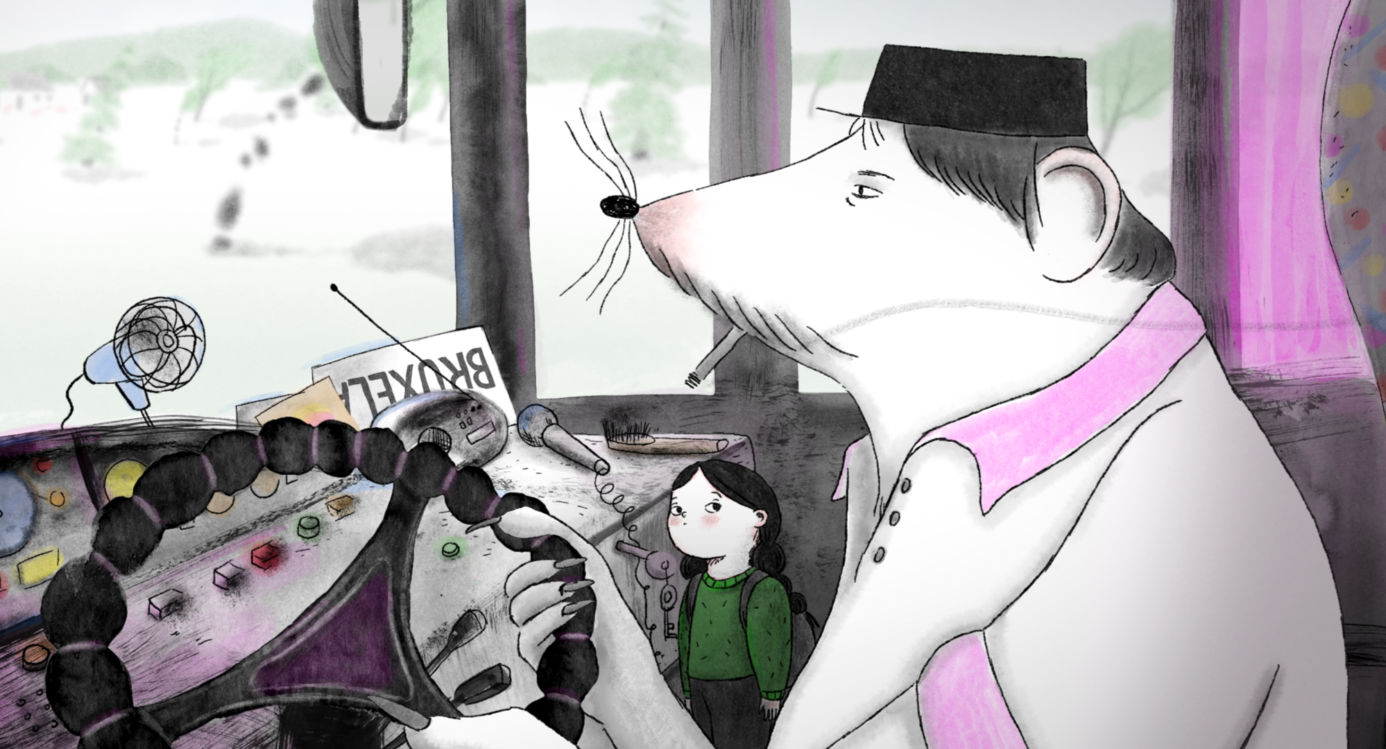 In the 1990s, 8 years-old Agata leaves Poland for Belgium. Anxious about her journey, the little girl writes a letter to her father back home, but her pencil falls out and gets lost on the bus. Forced to overcome her shyness, she crawls between the seats in search of the pencil, plunging into a fantastic world populated by strange half-human, half-animal passengers. At the tender age of 8, her eyes transform the reality of migration into an initiatory experience.